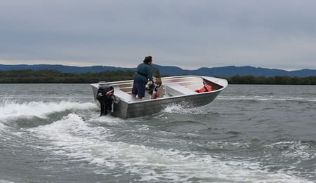 Båten fungerar mycket bra med en Honda fyrtaktsmotor, vilket ger tyst gång, låg bränsleförbrukning och hög driftsäkerhet.
